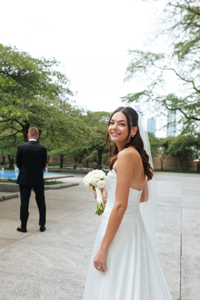 Amanda and Nick’s intimate Chicago wedding was filled with meaningful moments, relaxed joy, and classic city charm. They started their day with a private first look in the Art Institute of Chicago’s South Gardens, surrounded by lush greenery. As rain moved in, we headed inside the museum for portraits—editorial, timeless, and perfectly them.