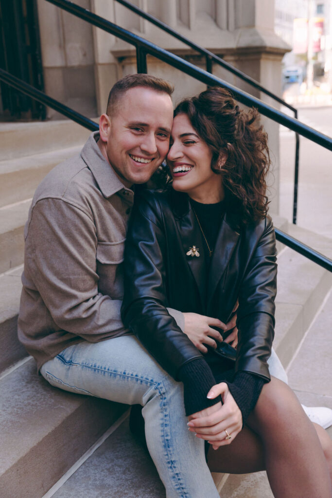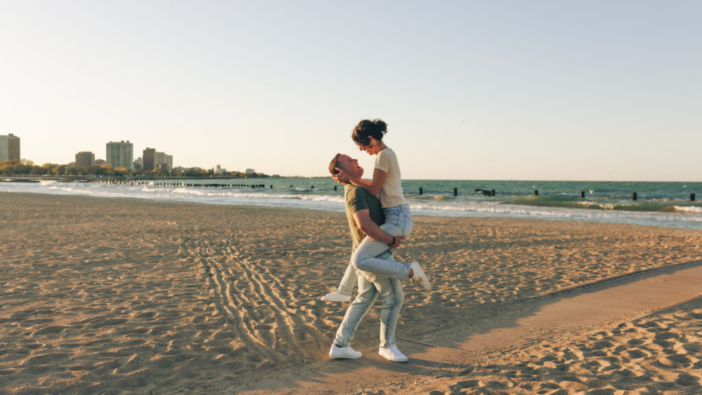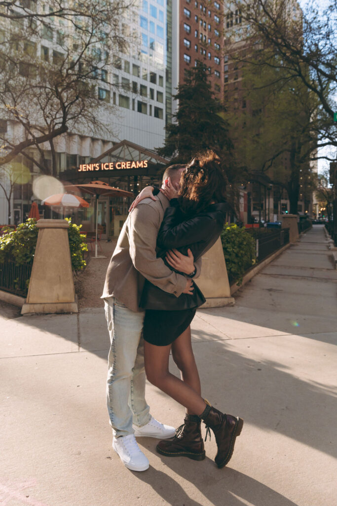 Angelica & Brett’s Chicago engagement session is the perfect example. Their photos have that cinematic, romantic feel because they trusted me, trusted each other, and let the moments unfold naturally — exploring downtown near Jeni’s Ice Creams Chicago, one of my favorite cozy date spots.